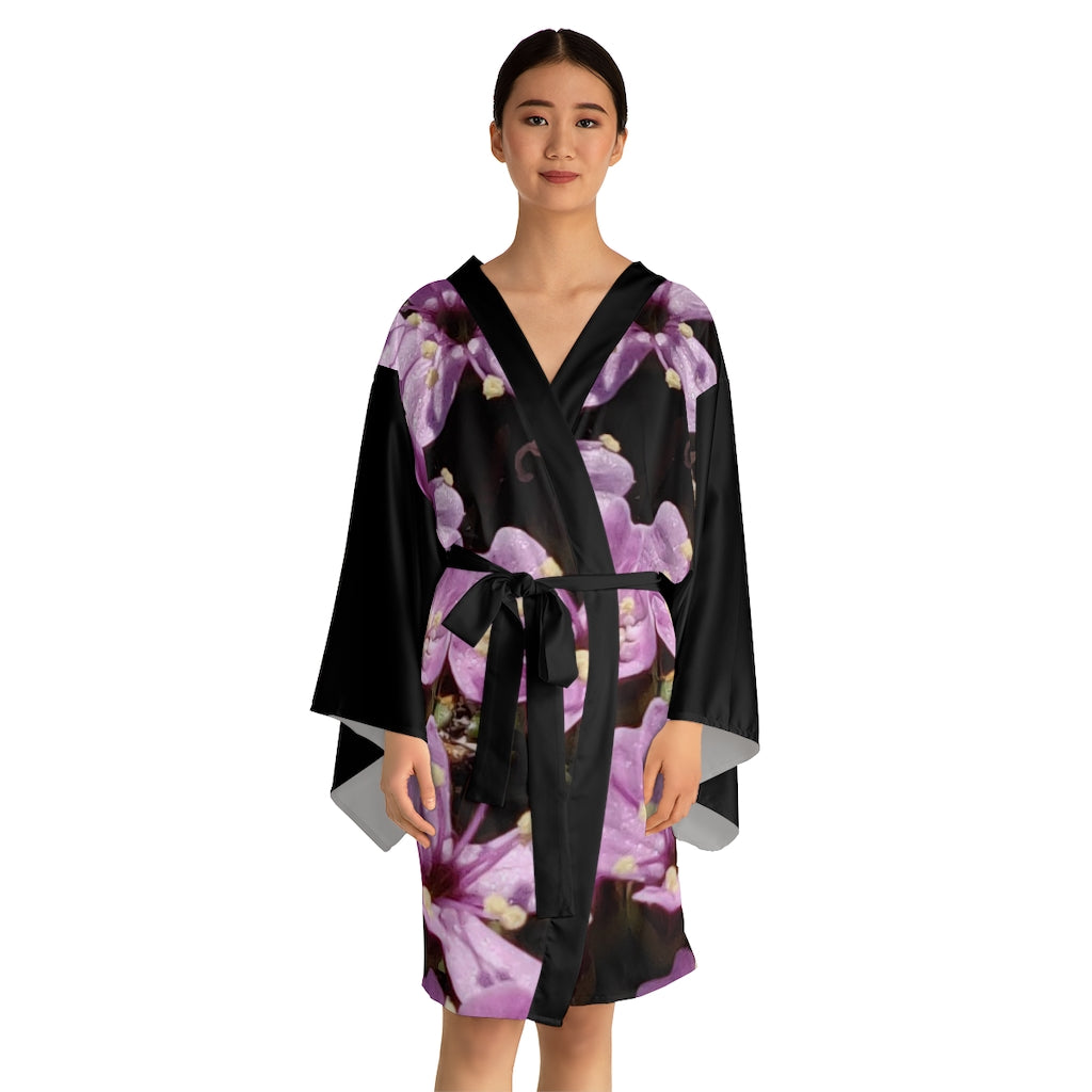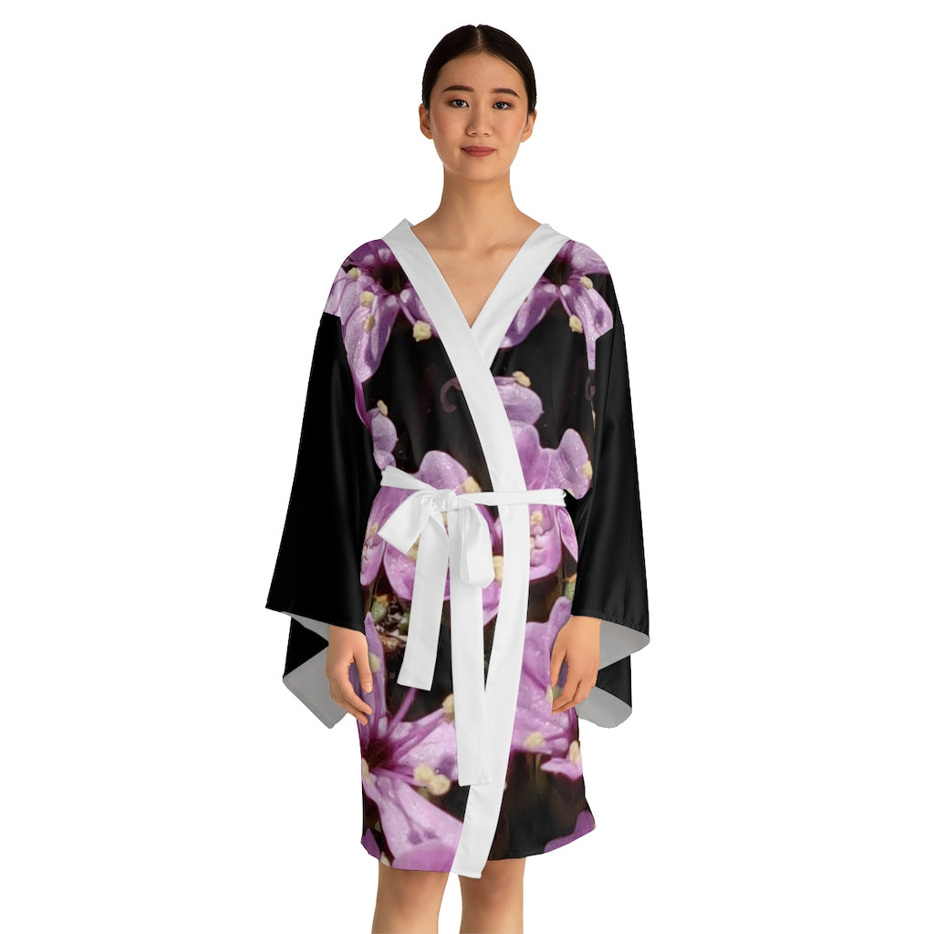 Whether it’s lounging at home or making a stylish appearance, these kimono-style robes are as beautiful as they are cozy. With a figure-flattering shape, this chic mid-length robe features the signature flowing bell sleeves and a belt, making it an absolute delight for Japanese style enthusiasts. Each kimono is 100% made with Polyester for that smooth & silky feel.